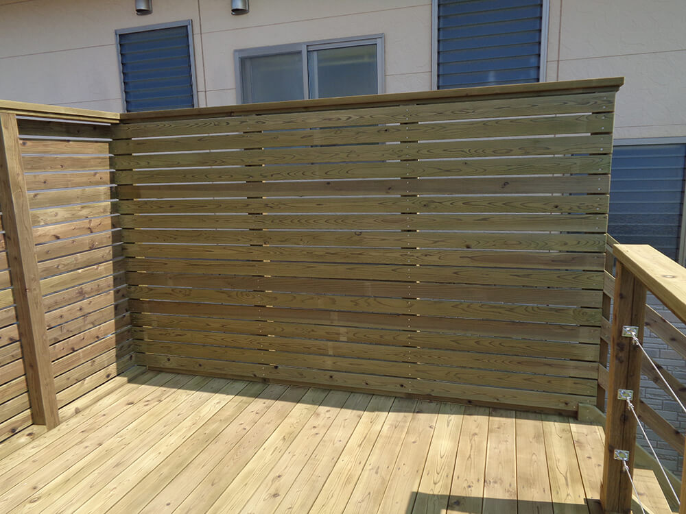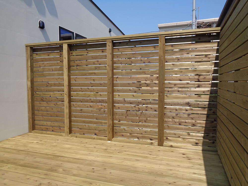 - ウッドデッキ目隠し, アウトドアリビング, ウッドデッキ フェンス, ウッドデッキ 二階