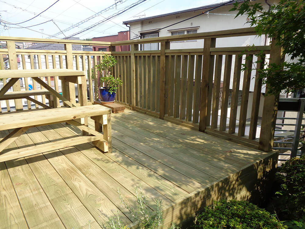 梁が腐食してしまい安心して使えないので車庫上ウッドデッキを造り替えたい