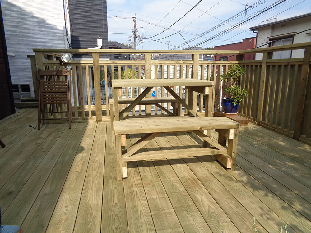 テーブルや椅子もご希望でしたので、デッキと同じ木材で造作しました。