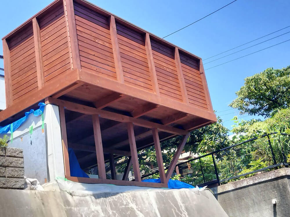 リフォーム業者様より擁壁上に建つお宅のお庭も兼ねたリフォーム工事で、傾斜があるためウッドデッキは専門業者にお願いしたい。