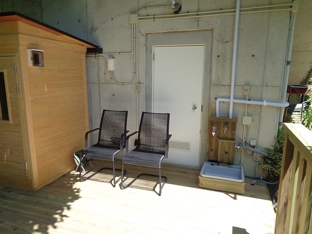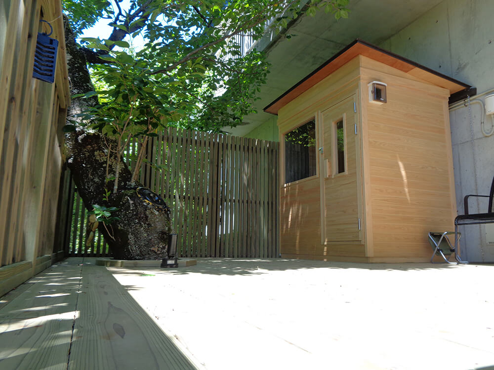 - 国産天然木デッキで至福の外気浴スペースの完成!