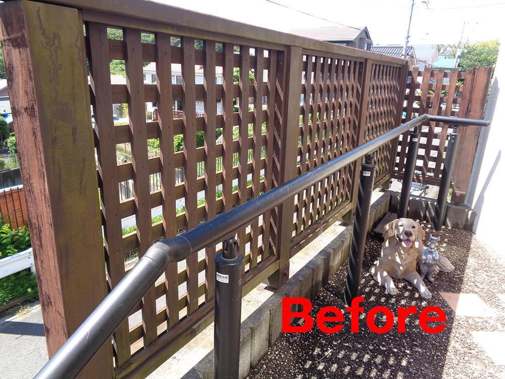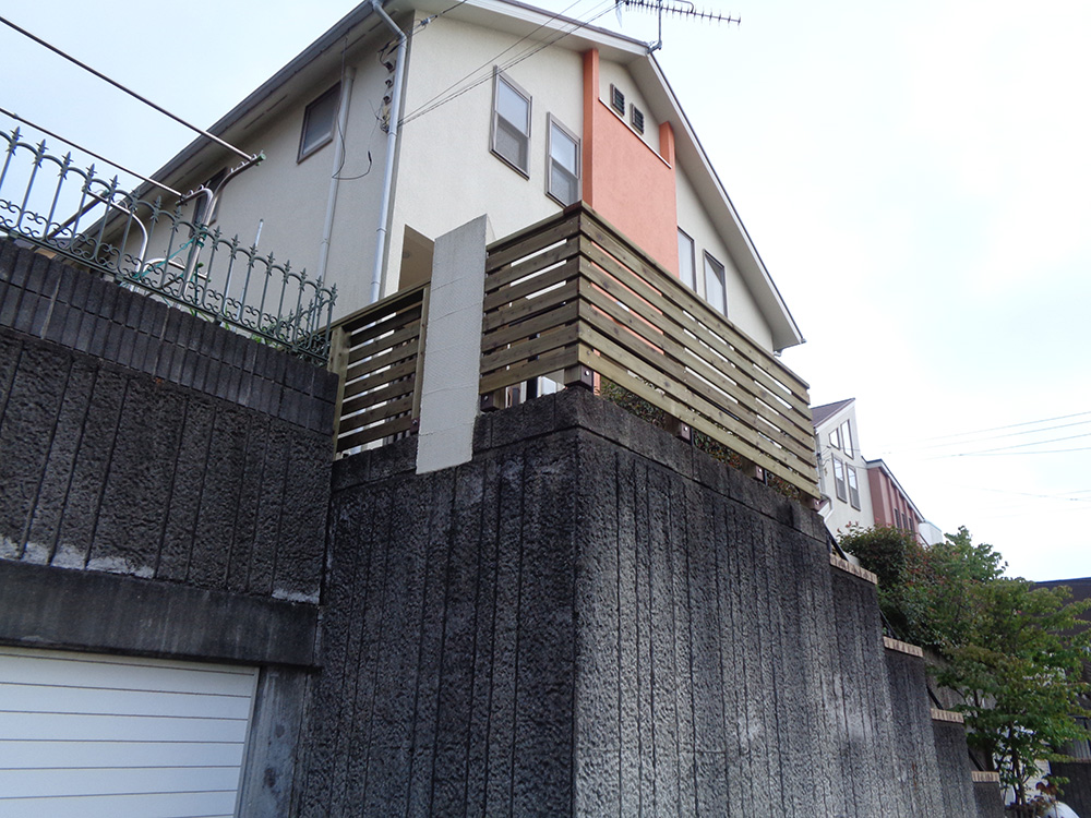 玄関アプローチのフェンスも老朽化し、笠木が外れてしまっている箇所もありました。強風で擁壁上から外へ落ちてしまっては大変です。こちらも造り替えのご依頼をいただきました。
